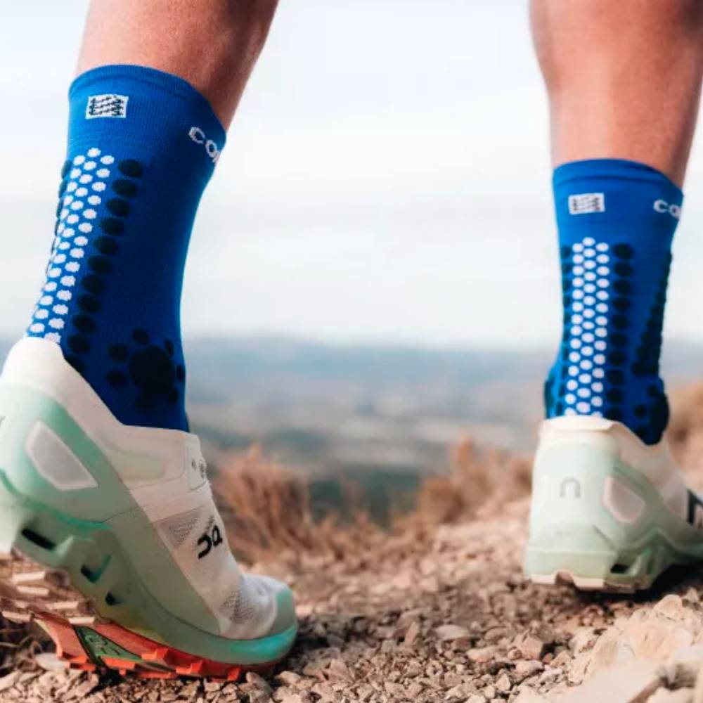 Los calcetines Compressport Pro Racing v4.0 Trail son unos calcetines de trail running de última generación que protegen el pie, absorben los impactos y ofrecen un buen soporte en los terrenos más duros.