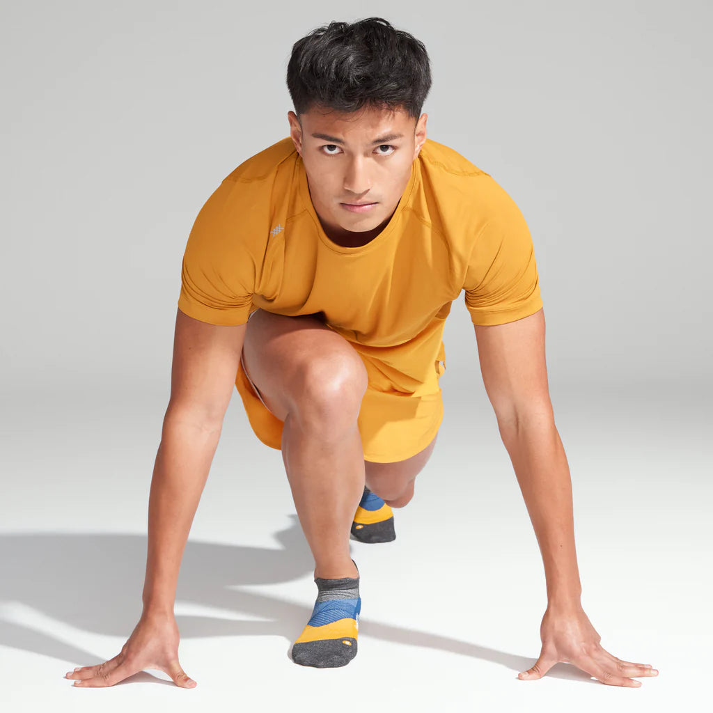 Su confección sin acolchado permite una conexión directa con la zapatilla, ofreciendo una mayor sensibilidad y control. Además, el refuerzo trasero tipo “tab” protege el talón de rozaduras y molestias, lo que los convierte en una opción ideal tanto para correr como para entrenar a diario.
