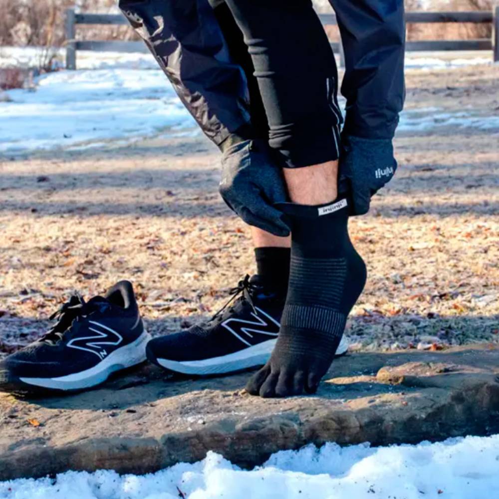 Diseñado para rendir en todo tipo de superficies, los calcetines Injinji Run Lightweight Mini-Crew de running ofrecen un alto rendimiento sin añadir volumen. Su innovador diseño de cinco dedos previene las ampollas, controla la humedad y favorece el uso completo del pie, tanto si corres una maratón como un entrenamiento. Es un calcetín con fibras ligeras y tiene un soporte en el arco que aumenta la comodidad, mientras que la altura Mini-Crew protege el tobillo de la suciedad.