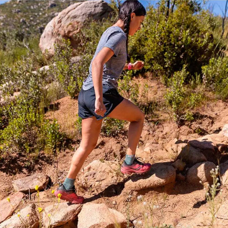 Diseñados para mujeres que corren por terrenos irregulares, los calcetines Injinji Trail Midweight Mini-Crew Mujer con diseño de 5 dedos, ofrecen comodidad, protección y soporte. Su doble puño en altura Mini-Crew evita la entrada de suciedad y residuos, mientras que las fibras COOLMAX® EcoMade absorben la humedad. La amortiguación de peso medio en la planta y el soporte del arco garantizan comodidad en las carreras por montaña, mientras que el diseño único de cinco dedos minimiza las ampollas y permite un uso total del pie en senderos estrechos. Haz de este tu calcetín de confianza para entrenamientos, caminatas de un día y desafíos de ultra resistencia.