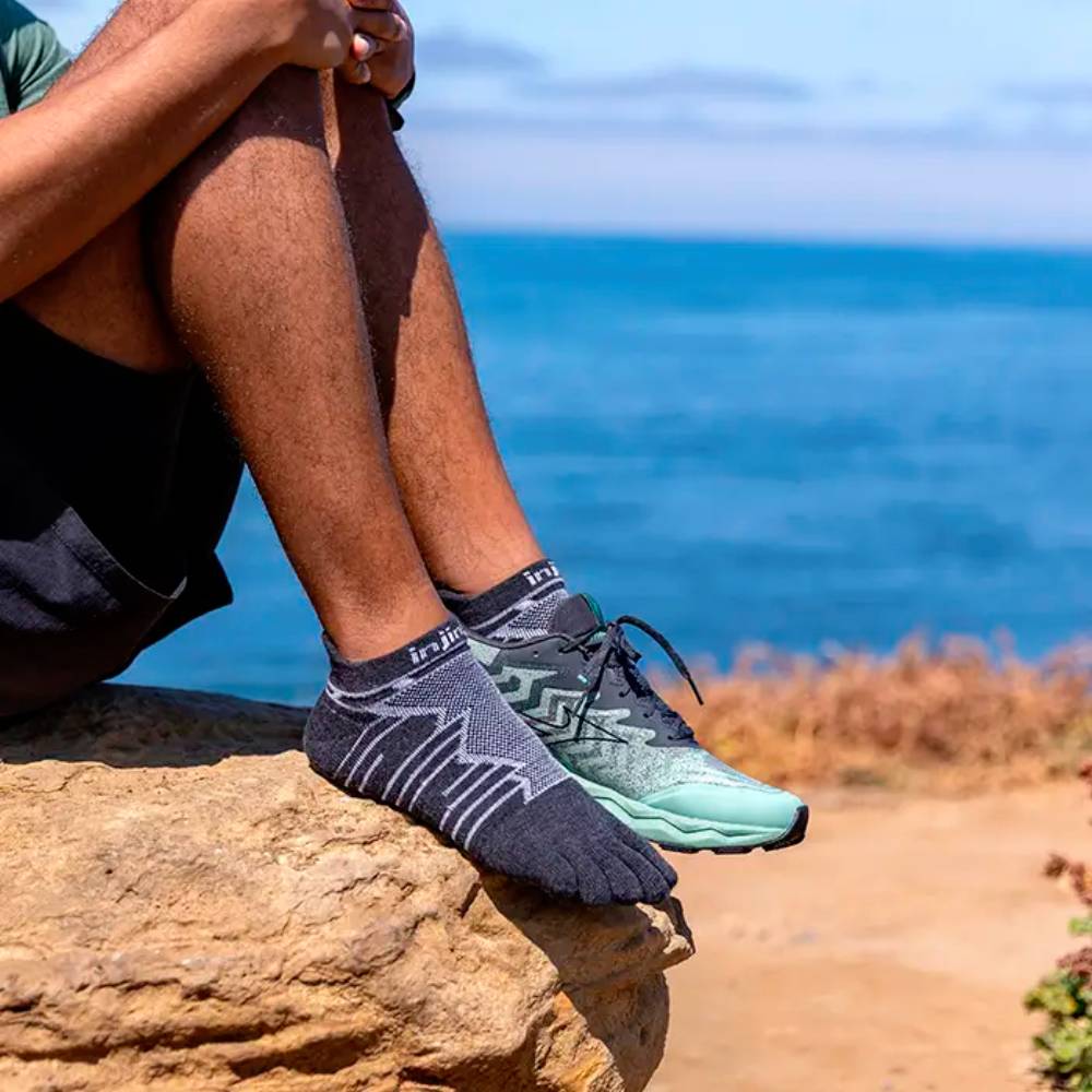 Los calcetines Injinji Ultra Run No-Show Wool están diseñados para ofrecer comodidad, rendimiento y durabilidad en cualquier clima durante tus carreras. Este calcetín técnico con acolchado de rizo, combina las ventajas de la lana merino certificada por el Responsible Wool Standard (RWS), brindando una suavidad superior, excelente resistencia a los olores y regulación térmica. Además, la tecnología de cinco dedos previene las ampollas y permite que los dedos se abran de forma natural. Su altura No-Show queda por debajo del tobillo, y tiene una lengüeta en el talón que evita rozaduras y deslizamientos.