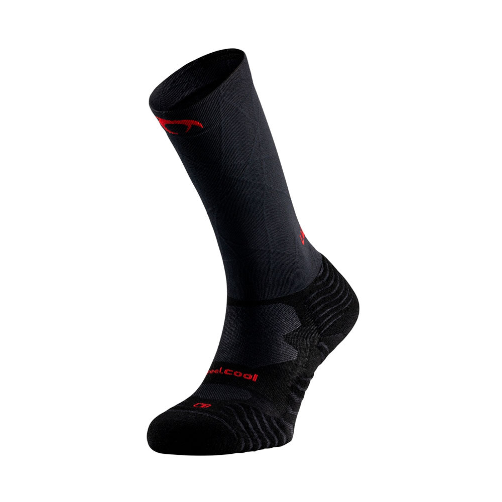 Calcetín con estructura asimétrica, lo cuál facilita y respeta la ergonomía de tus pies, diferenciados por las letras R y L. Fabricado sin costuras y con zonas de autoventilación en la zona del empeine. Además, en esta zona cuenta con una franja de adaptabilidad antideslizamiento para un mayor ajuste.