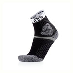 Calcetines de trail running, unisex y de caña media. Cómodos, ventilados y protegidos. Con refuerzo en las zonas más sensibles a roces y golpes, y una banda de agarre en la planta para evitar deslizamientos dentro de la zapatilla. Una opción muy buena para pasar muchas horas correteando por el monte.