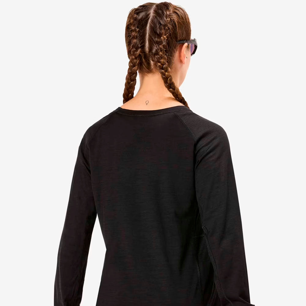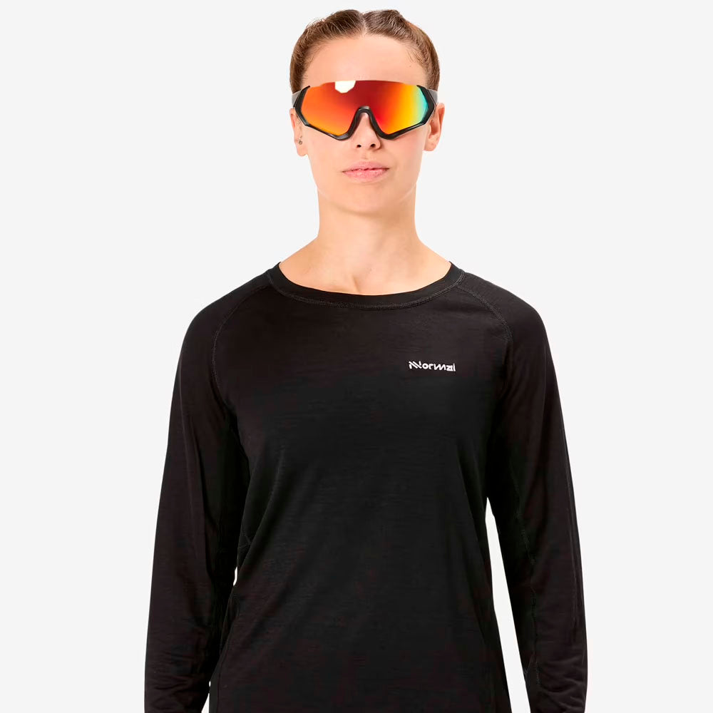 100% lana merina. 100% confort. La camiseta de manga larga NNormal Merino de mujer es perfecta para correr los días fríos o como primera capa.