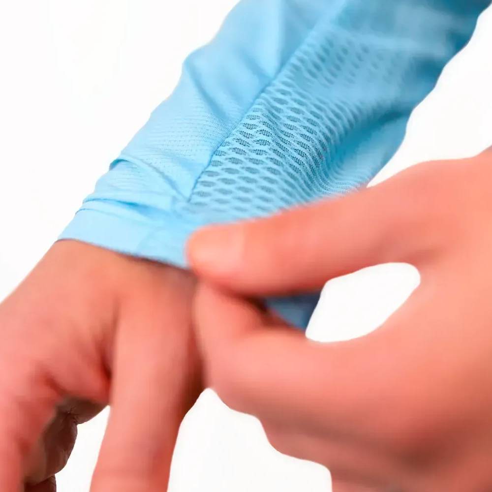La manga larga ofrece protección adicional frente a vegetación, ramas o roces con el equipo, sin aumentar el peso ni comprometer la transpirabilidad.