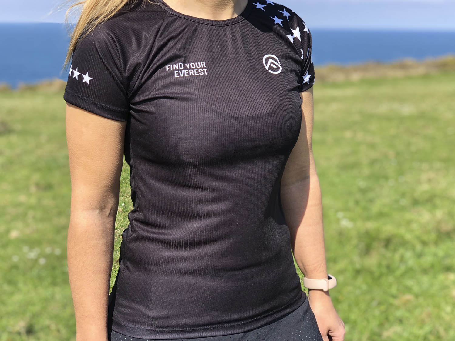 Cuando decides hacer tu propia ropa deportiva, si tienes la suerte de poder elegir cómo la quieres a nivel de material y diseño —como ha sido nuestro caso—, el resultado es una prenda brutal de la que no podemos estar más enamorados. La camiseta técnica Find Your Everest Black Stars Mujer es justo la camiseta que queríamos para nosotros, así que esperamos que a ti también te guste.
