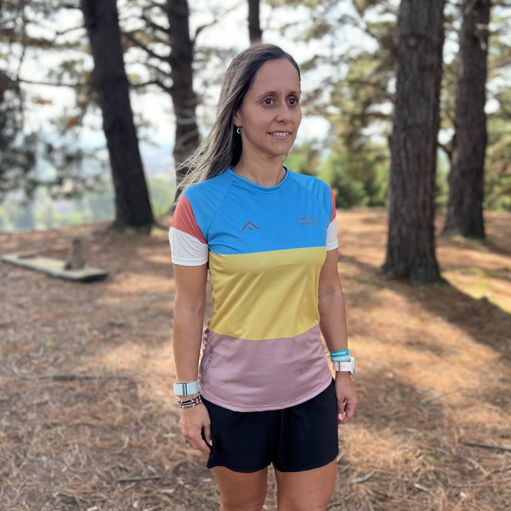 Correr cómoda a la par que elegantemente, no esta reñido. Con la camiseta técnica Find Your Everest Blue Mustard Mujer puedes cumplir ambos requisitos en tus salidas de trail running por el monte o cuando te exprimas al máximo en el asfalto.