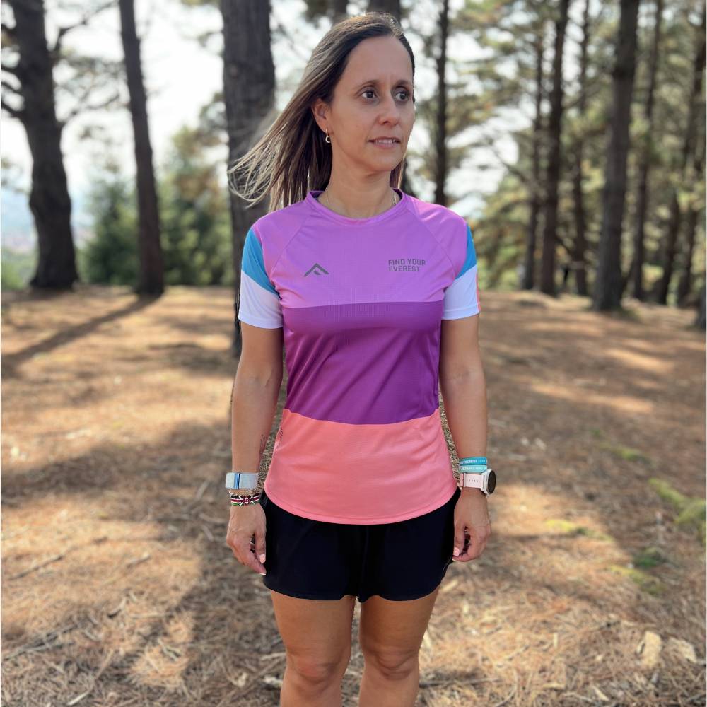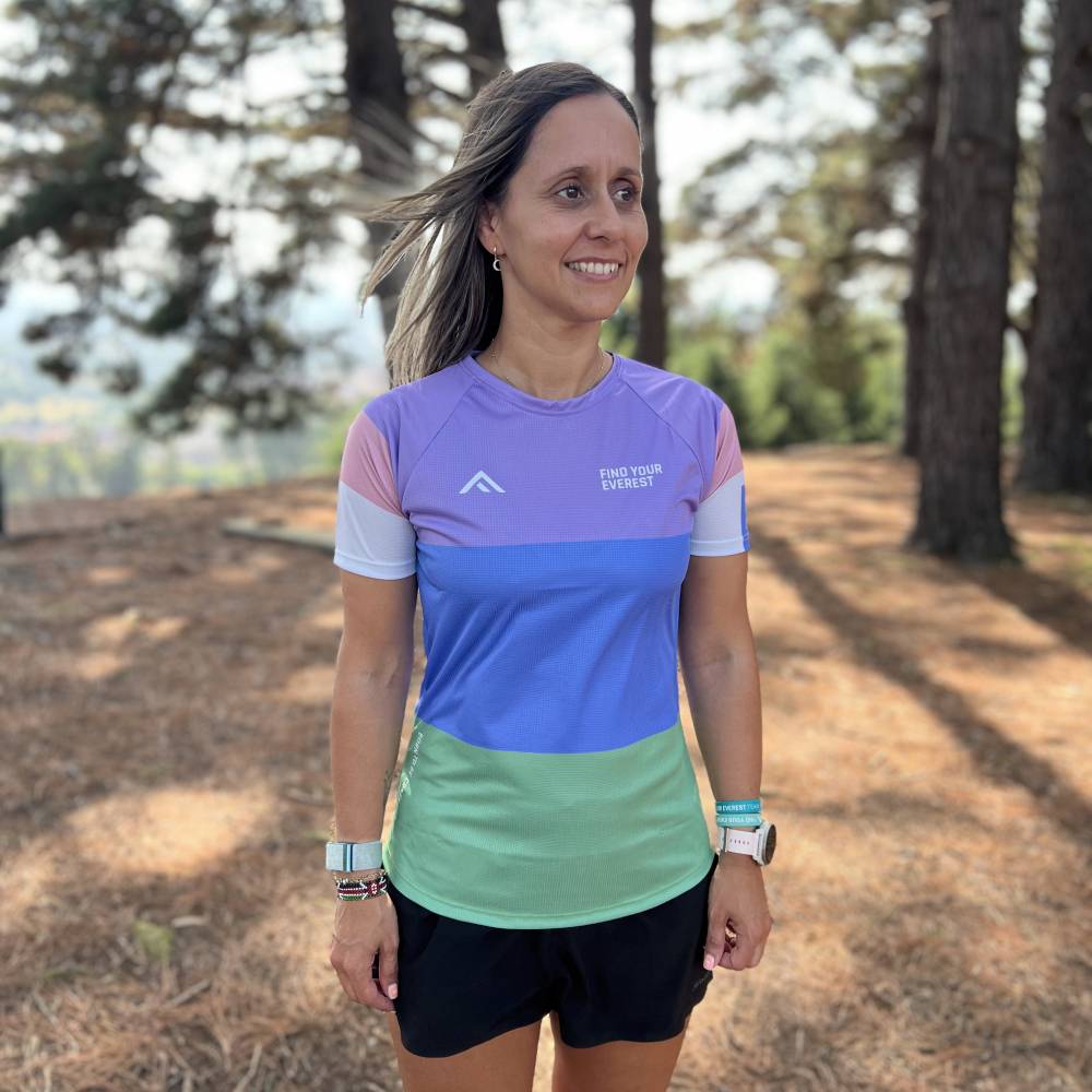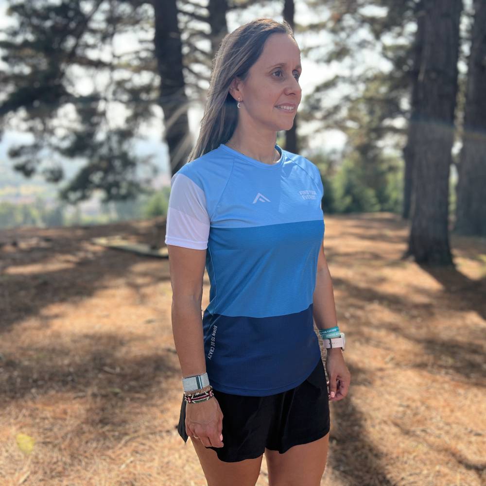 Correr cómoda a la par que elegantemente, no esta reñido. Con la camiseta técnica Find Your Everest Blue Rush Mujer puedes cumplir ambos requisitos en tus salidas de trail running por el monte o cuando te exprimas al máximo en el asfalto.