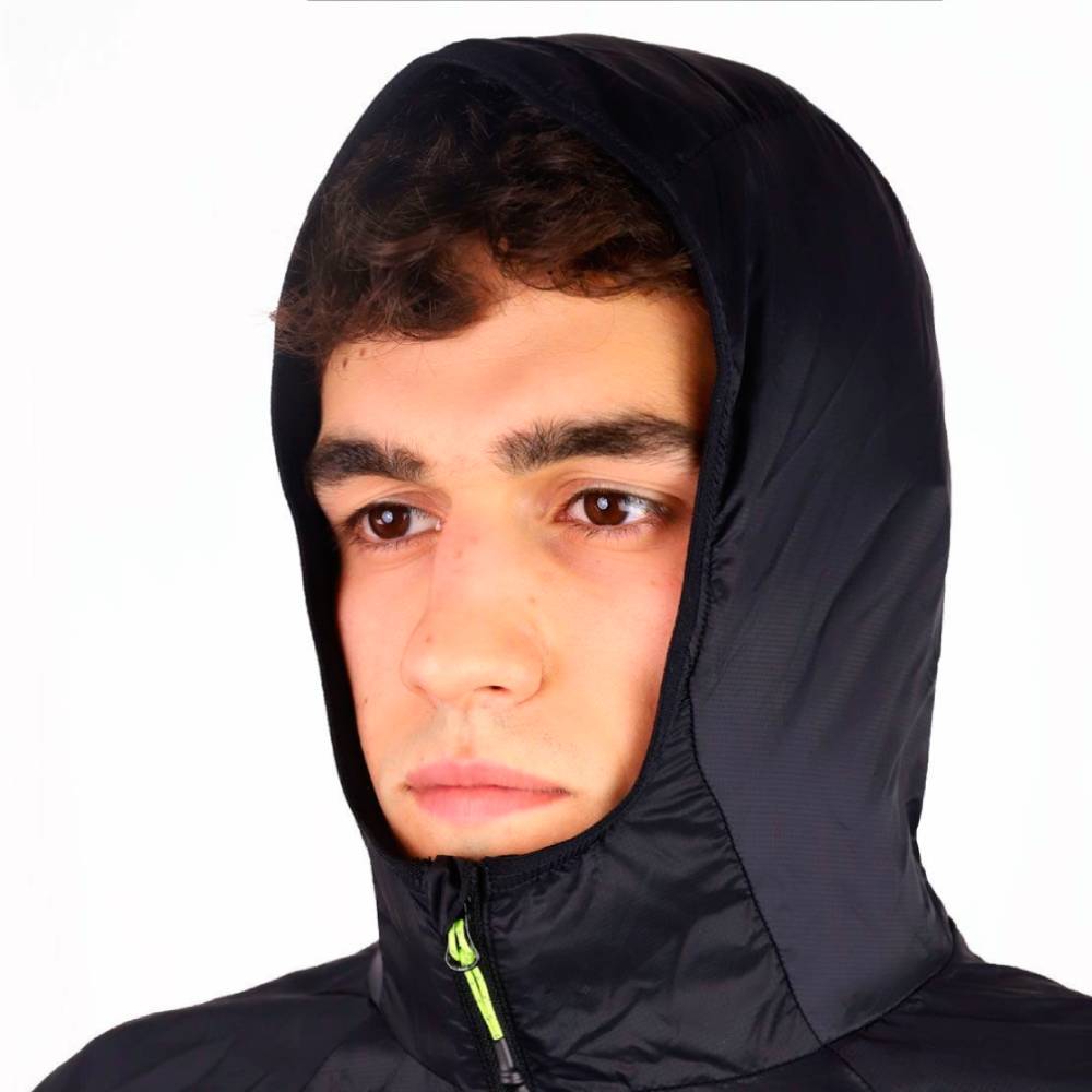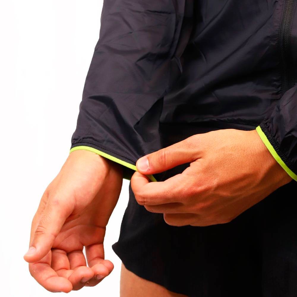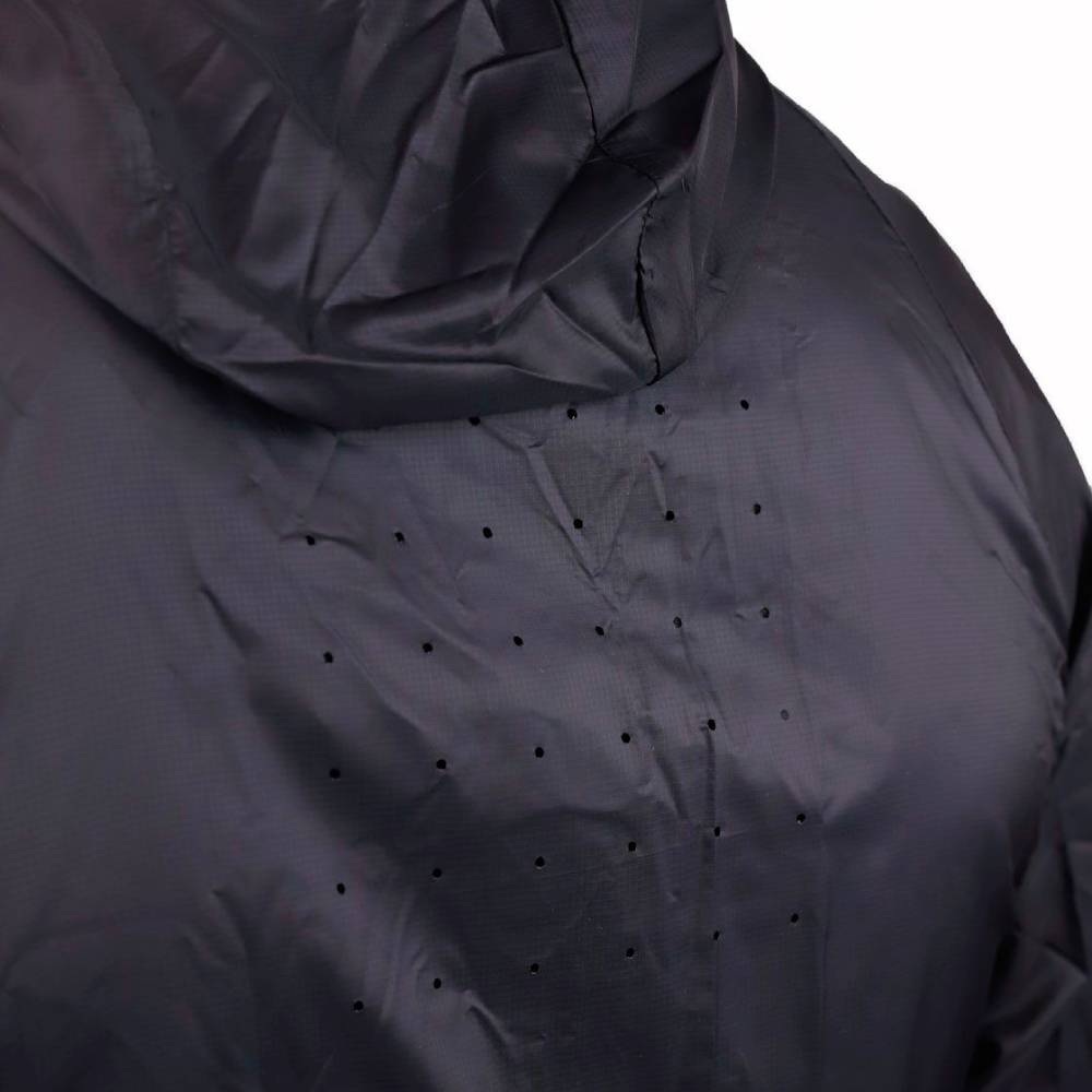 Su diseño incorpora microperforaciones a láser en la espalda para aumentar la transpirabilidad, evitando acumulación de calor. Se guarda en su propio bolsillo interior, ocupando un volumen mínimo y facilitando el transporte en mochila o cinturón. Una prenda técnica, ligera y versátil para quienes buscan protección compacta en actividades de alta intensidad.