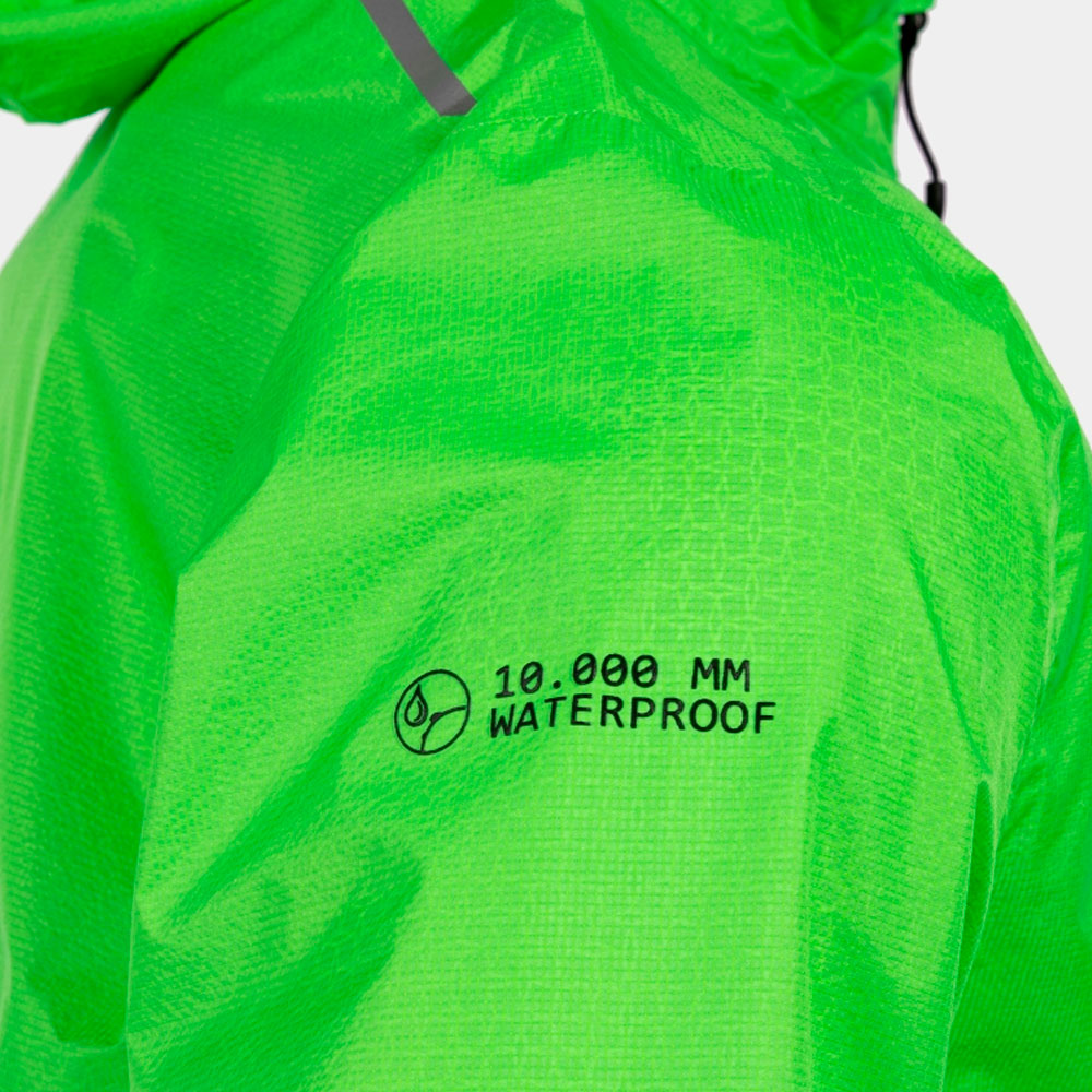Esta chaqueta impermeable está confeccionada en tejido waterproof que repele el agua. Nivel de impermeabilidad de alta gama (10.000 mm), resistente a lluvia prolongada, fuerte y aguanieve. También con capacidad cortavientos para que el tiempo no frene las ganas de seguir sumando kilómetros. Es muy ligera y no pone límites al movimiento.
