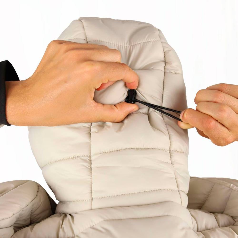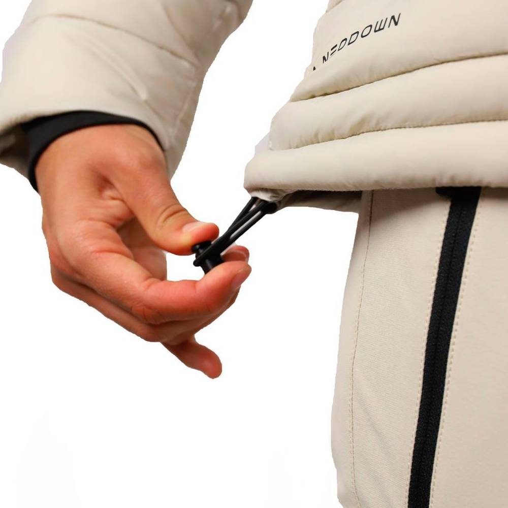 El aislamiento NeoDown combina fibras huecas de poliéster reciclado con un 24% de Sorona® BIO, generando una estructura tridimensional estable que mantiene el aire caliente en su interior. Su comportamiento térmico se mantiene incluso en condiciones húmedas, conservando volumen y confort sin apelmazarse.