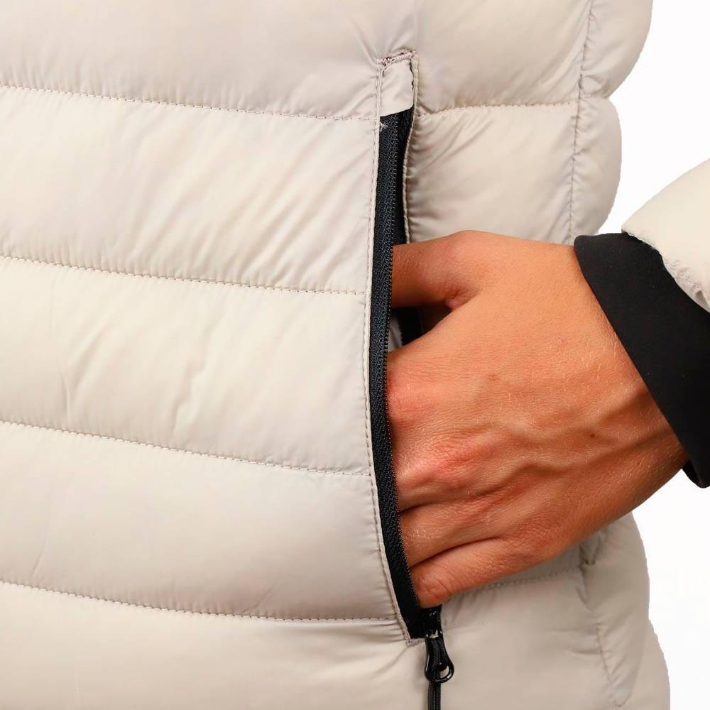 El tejido exterior de nylon 20D (42 g/m²) combina resistencia y suavidad, logrando un equilibrio entre prestaciones técnicas y un diseño atractivo que también permite su uso en el día a día.