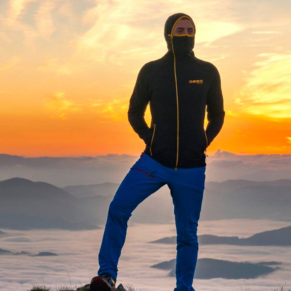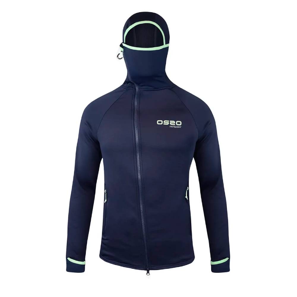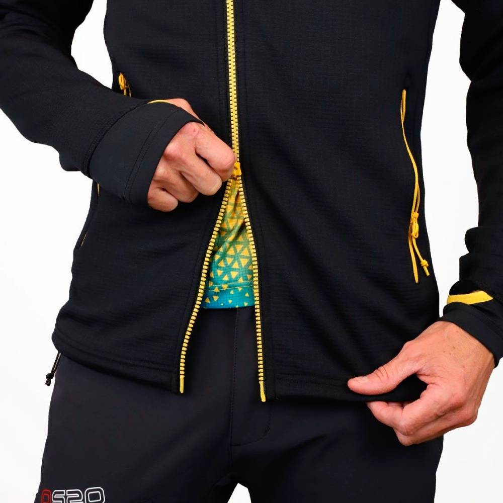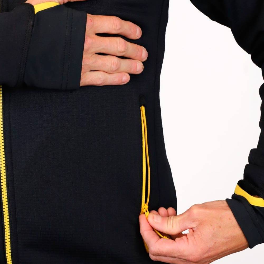 Su alta elasticidad hace que se ajuste al cuerpo a la perfección sin limitar los movimientos. La capucha ha sido milimétricamente diseñada, con un cuello que puede colocarse como máscara para proteger boca y nariz en las condiciones más extremas, y junto con su cremallera asimétrica que se cierra a un lado, evita molestias incluso tras muchas horas de uso. Los puños con agujero para el pulgar permite un ajuste perfecto para mantener protección y calor.