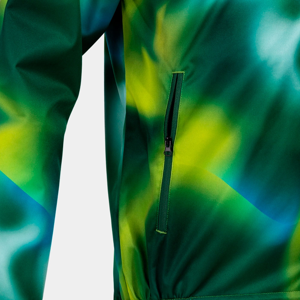 El diseño de la chaqueta es rompedor y llamativo. Completa el look con estilo gracias a su sublimado multicolor que recorre toda la prenda, fusionándose mediante efecto óptico. De hecho, los tonos elegidos combinan a la perfección con los colores característicos de la naturaleza: verdes, azules, marrones y grises. Disfruta corriendo por la montaña bajo la lluvia con este espectacular chubasquero de trail running.