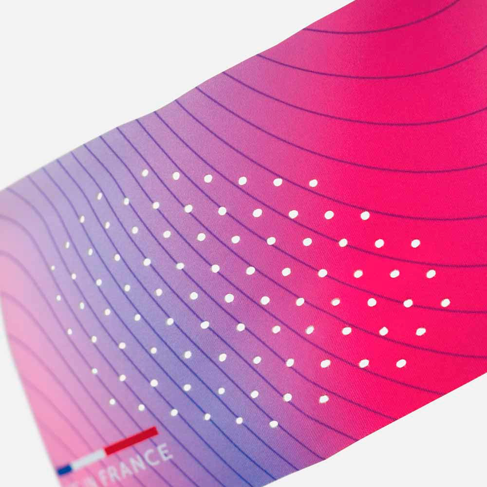 Su principal virtud es su elasticidad, proporcionando un ajuste cómodo que se adapta a diversas formas y tamaños de cabeza. La transpirabilidad del material es una ventaja adicional, asegurando que el corredor se mantenga fresco y cómodo incluso en las condiciones más intensas.