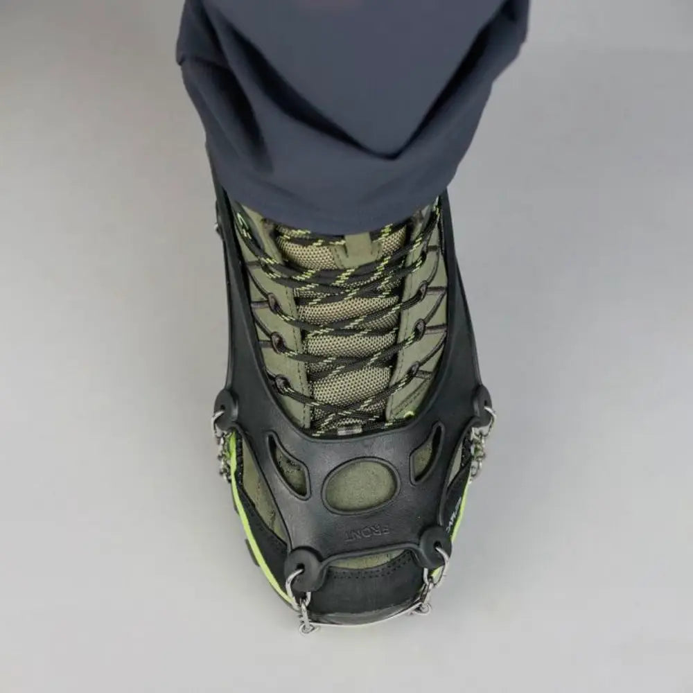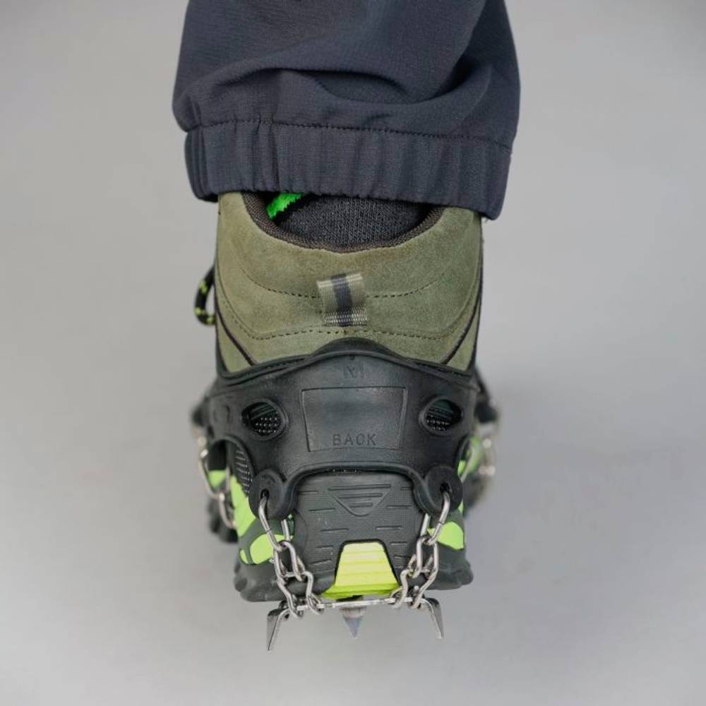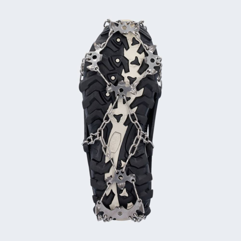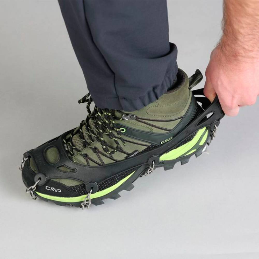 Adaptables al calzado que uses, se recomiendan para caminar con seguridad sobre nieve compacta y superficies heladas gracias a las puntas que se agarran al suelo.