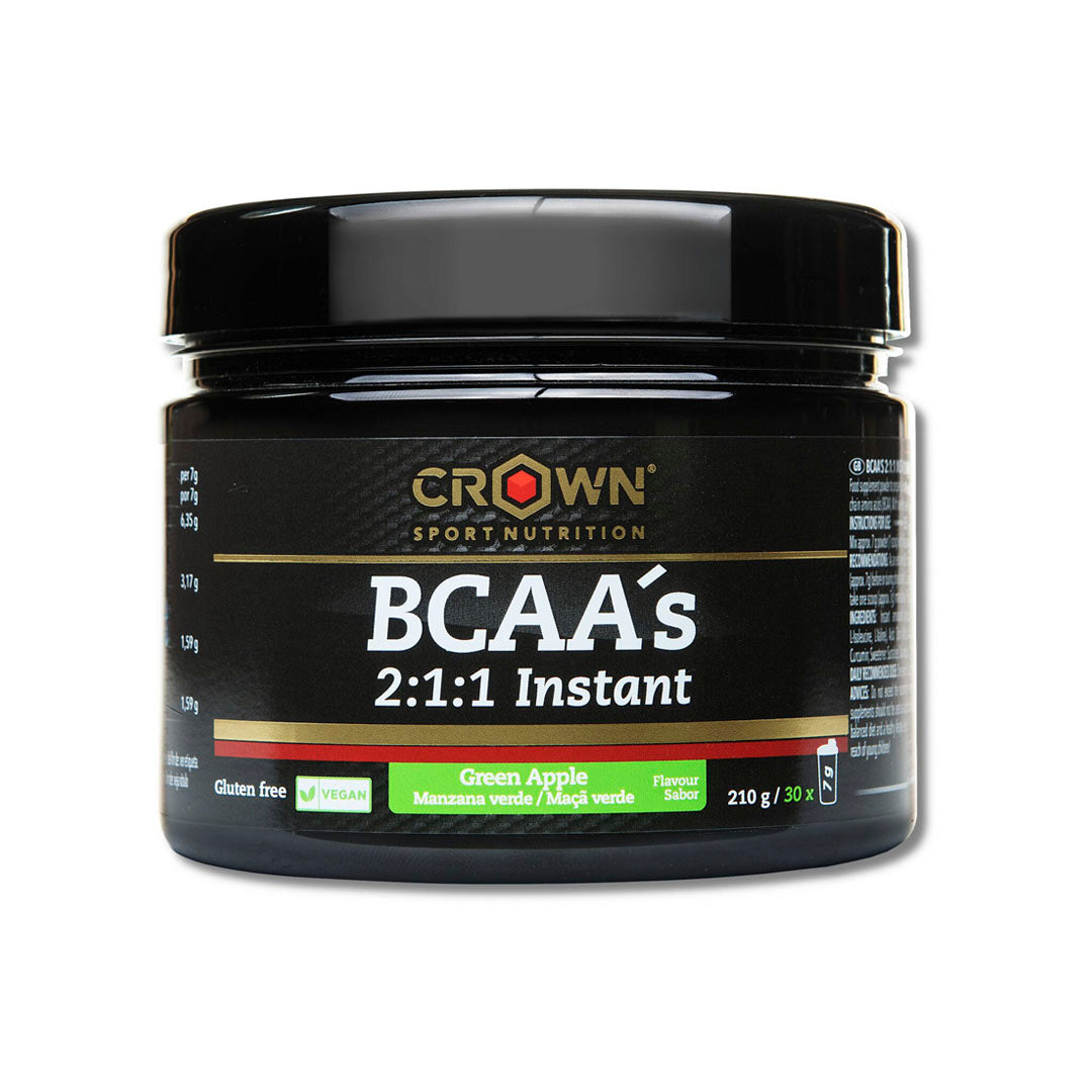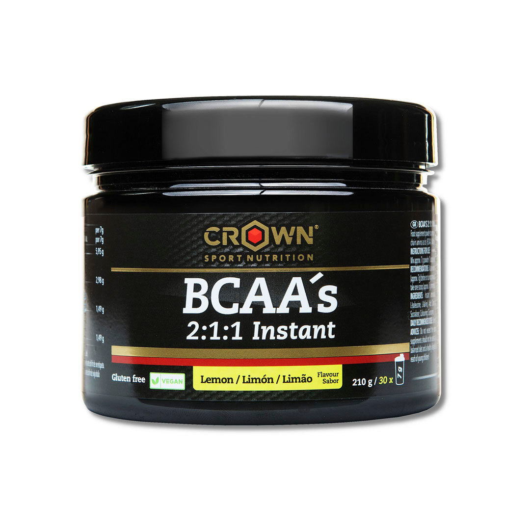 CROWN BCAA 2:1:1 INSTANT son aminoácidos ramificados en polvo con relación 2:1:1 de disolución instantánea.