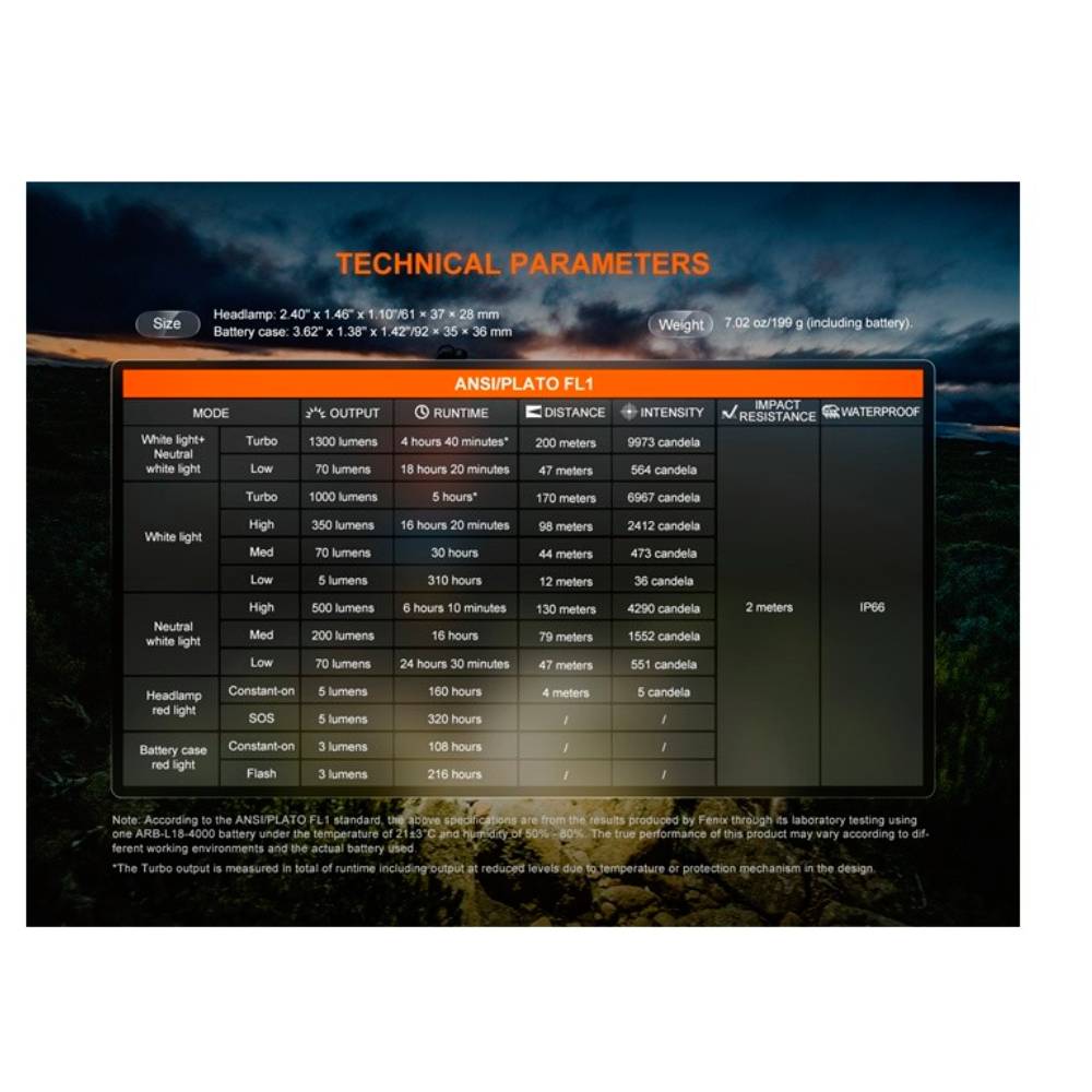 - 1300 lúmenes de salida máxima y alcance de hasta 200 metros