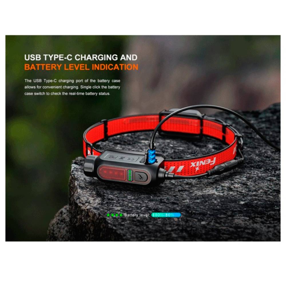 El frontal Fenix HP12R-T 1300 lúmenes en color rojo es una solución de iluminación potente y versátil diseñada para corredores de trail running.