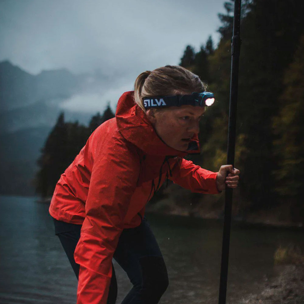 El resistente frontal Silva Discover 500 lúmenes tiene una potencia lumínica de 500 lúmenes y una cómoda cinta ancha para la cabeza. Su diseño es hermético al polvo y resistente al agua, según el estándar IP65. El modo de luz roja conserva tu visión nocturna, mientras que la luz naranja facilita la lectura de mapas. Cuenta con tecnología híbrida, lo que significa que son compatibles tanto con la batería recargable Silva Hybrid como con pilas AAA.