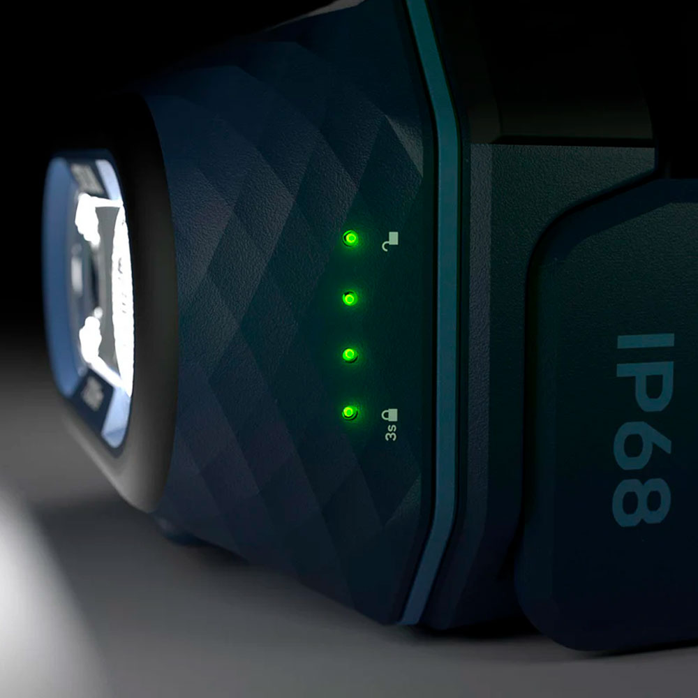 Explore 5 es una mejora potente del modelo anterior de linterna frontal Explore. Es duradera con un diseño a prueba de polvo y completamente impermeable que cumple con el estándar IP68. La banda para la cabeza ancha proporciona un ajuste cómodo con hebillas suaves para un ajuste fácil. Se incluye un soporte para casco.
