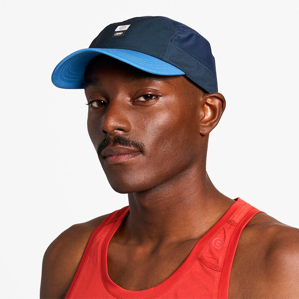 La gorra Ciele GOCap SC Comp C Cube Indigo luce una etiqueta reflectante termosellada en el frontal. Esta versión SOFTcurved del modelo Comp acierta con su diseño bicolor y el tejido elástico FLEXweave, que ofrece un ajuste cómodo y protección UPF.