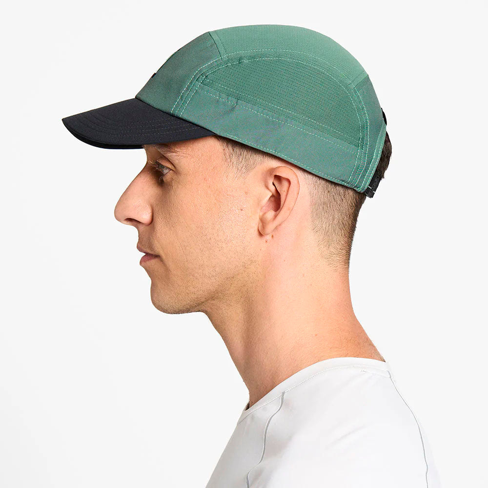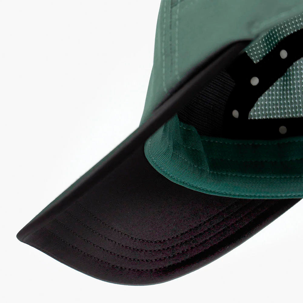 La gorra Ciele GOCap SC Comp C Cube Silver Pine luce una etiqueta reflectante termosellada en el frontal. Esta versión SOFTcurved del modelo Comp acierta con su diseño bicolor y el tejido elástico FLEXweave, que ofrece un ajuste cómodo y protección UPF.