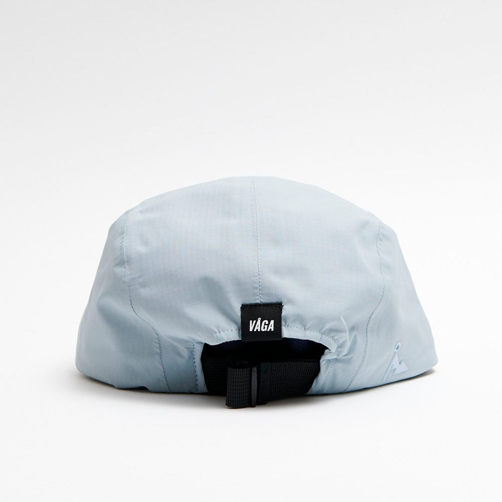 La gorra impermeable Våga Fell 2.0 Pastel Blue es una gorra de trail running de 5 paneles y está diseñada para rendir en cualquier condición climática. Es totalmente impermeable, con costuras selladas, ultraligera y fácil de plegar. Incorpora una visera corta con núcleo blando de EVA, banda interior de alta absorción de sudor y cierre ajustable. Ideal para trail running, entrenamientos exigentes o uso casual.