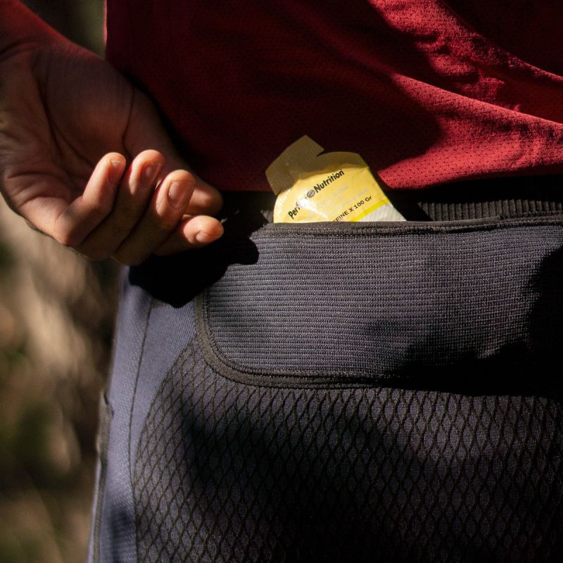 Los otros dos bolsillos van en los laterales de la malla y son más bien estrechos y alargados. Van bien para meter algún gel, barrita o similar. Incluso podrías meter las llaves en un momento dado. También son un buen recurso para ir metiendo los envoltorios de lo que nos vayamos comiendo durante la actividad. En fin, que es un espacio práctico y que se agradece.