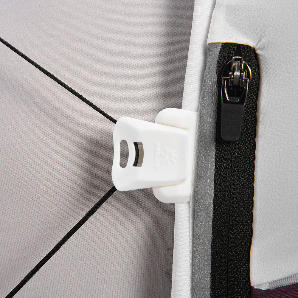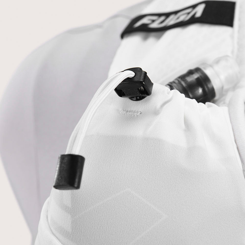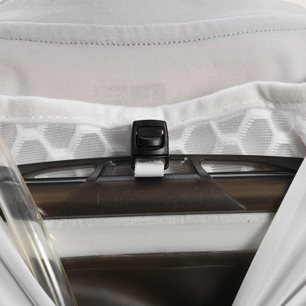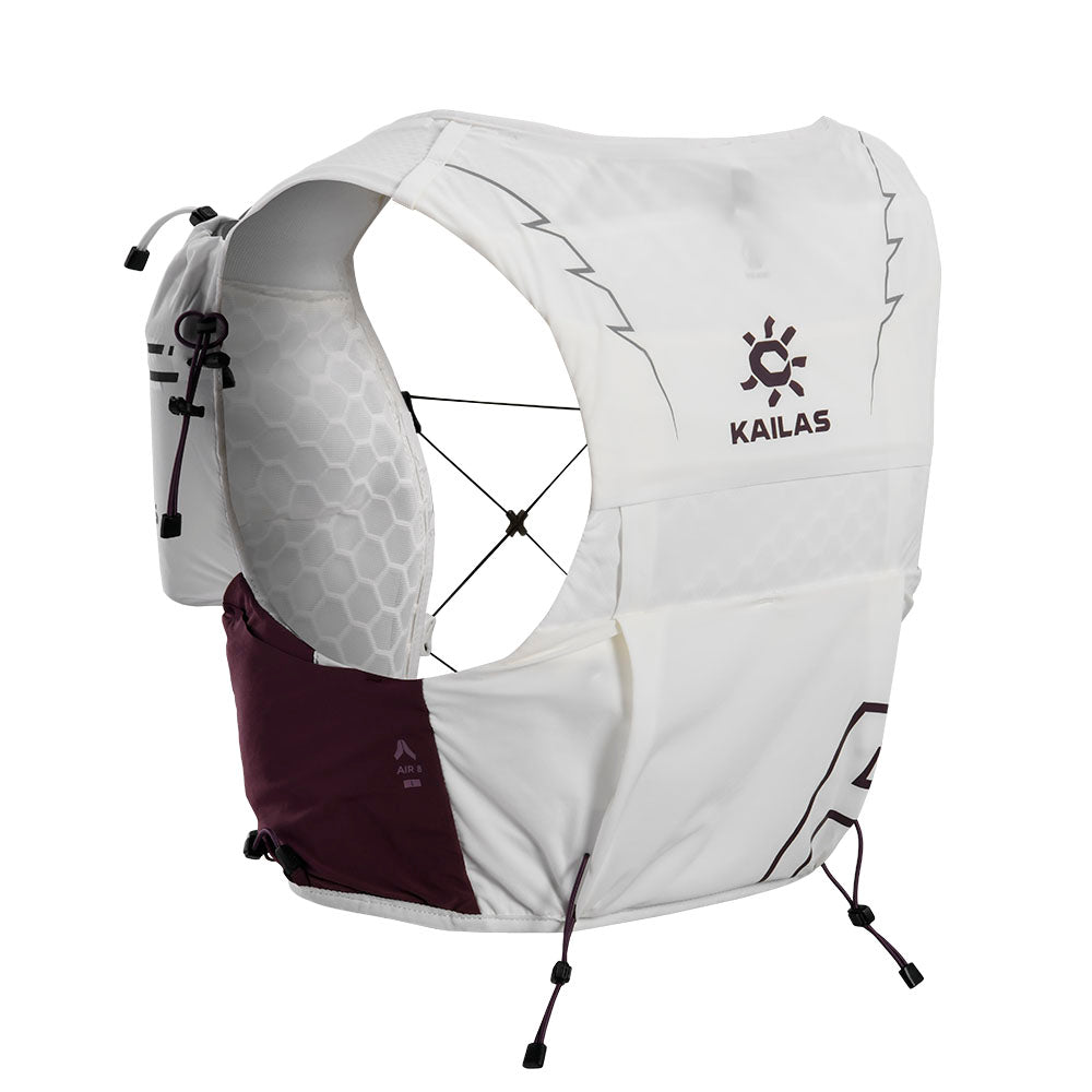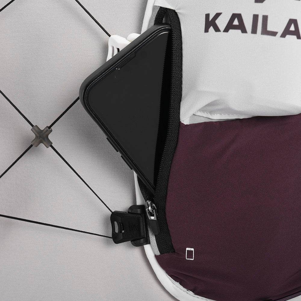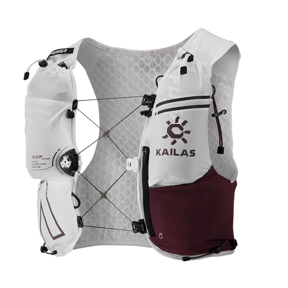 Gracias a su corte 3D, el chaleco distribuye el peso en la parte superior del torso, aliviando la presión en la zona lumbar y mejorando la movilidad. Incorpora el sistema ADF (All-round Dial Fit) de Kailas, que mediante un dial y guías de cordón permite un ajuste rápido, preciso y uniforme en todo el cuerpo. Además, el sistema BI-FIX evita que el agua de los soft flasks se agite cuando no están llenos, garantizando mayor estabilidad en carrera.