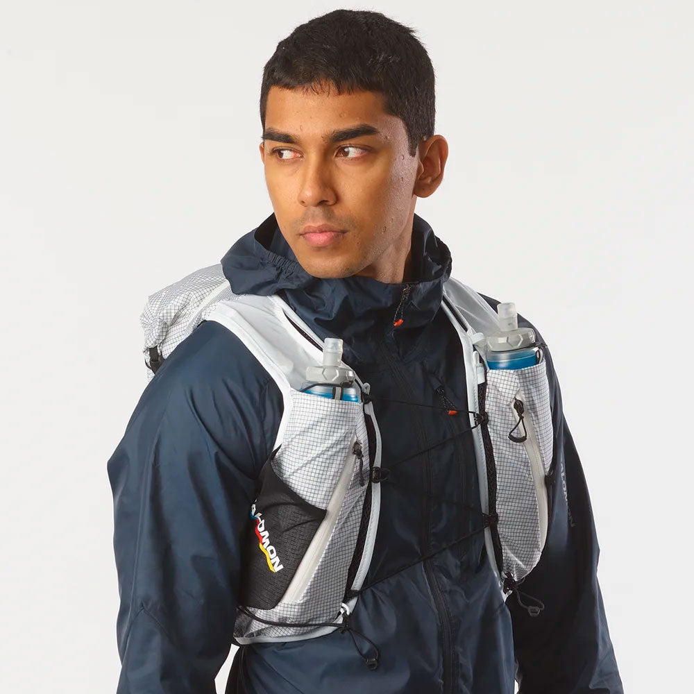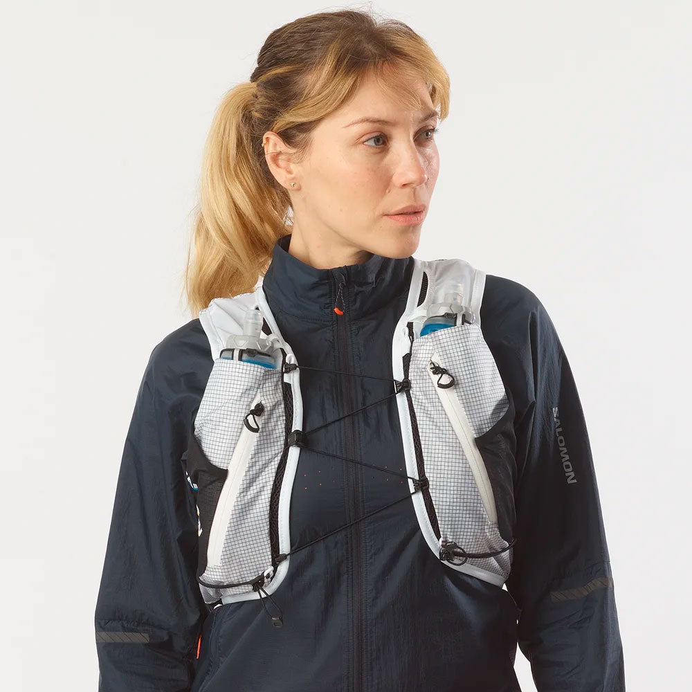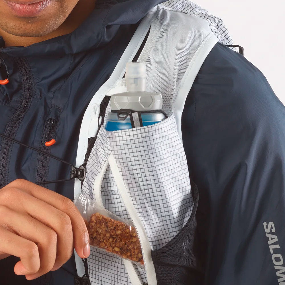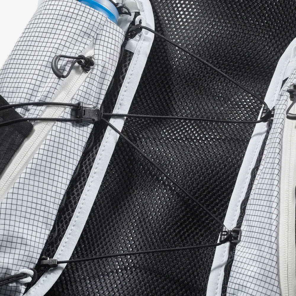 La mochila chaleco Salomon ADV Skin Cross Season 15 Race Flag, un llamativo homenaje en blanco y negro a nuestros orígenes de competición, aprovecha las ventajas de nuestro chaleco superventas ADV Skin y le añade almacenamiento principal inspirado en una bolsa estanca, bolsillos resistentes al agua y remates más grandes, para una apertura y almacenamiento sencillos en todo tipo de condiciones.