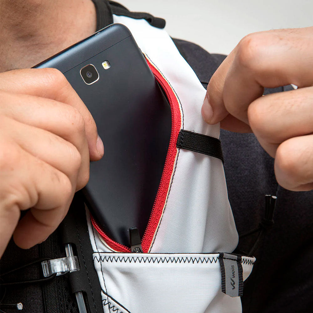 Con todo el confort de la tecnología Freelastic Tech™ la mochila chaleco Weis Simer II 10L ha sido diseñada hasta el último detalle para atletas de élite o corredores de largas distancias. El chaleco de hidratación Simer II 10L mantiene todos los bolsillos y compartimentos del Simer 7L y amplía su compartimento principal en 3 litros extras de guardado, todo al alcance de la mano.