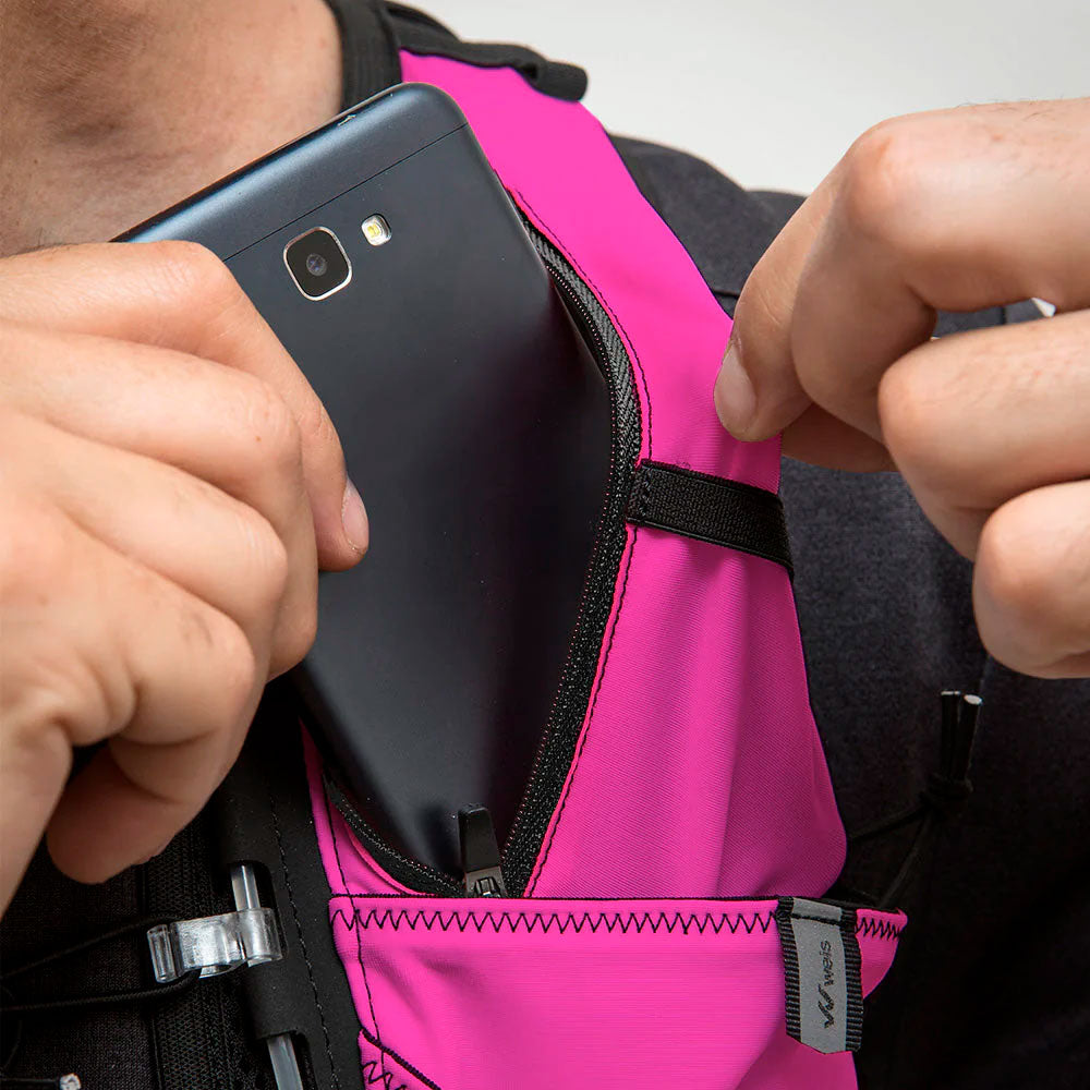 Con todo el confort de la tecnología Freelastic Tech™ la mochila chaleco Weis Simer II 10L ha sido diseñada hasta el último detalle para atletas de élite o corredores de largas distancias. El chaleco de hidratación Simer II 10L mantiene todos los bolsillos y compartimentos del Simer 7L y amplía su compartimento principal en 3 litros extras de guardado, todo al alcance de la mano.