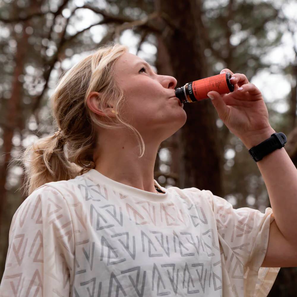 Toma un shot aproximadamente una hora antes de carreras cortas y 30 minutos antes de sesiones o competiciones más largas.