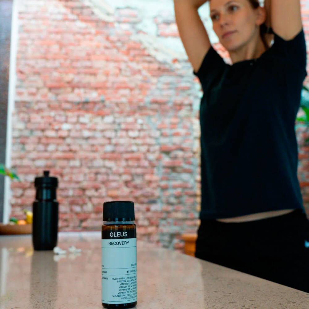 El Oleus Recovery Shot es un recuperador muscular diseñado para proteger tus células del estrés oxidativo y reconstruir tus músculos después de entrenamientos o competiciones intensas.