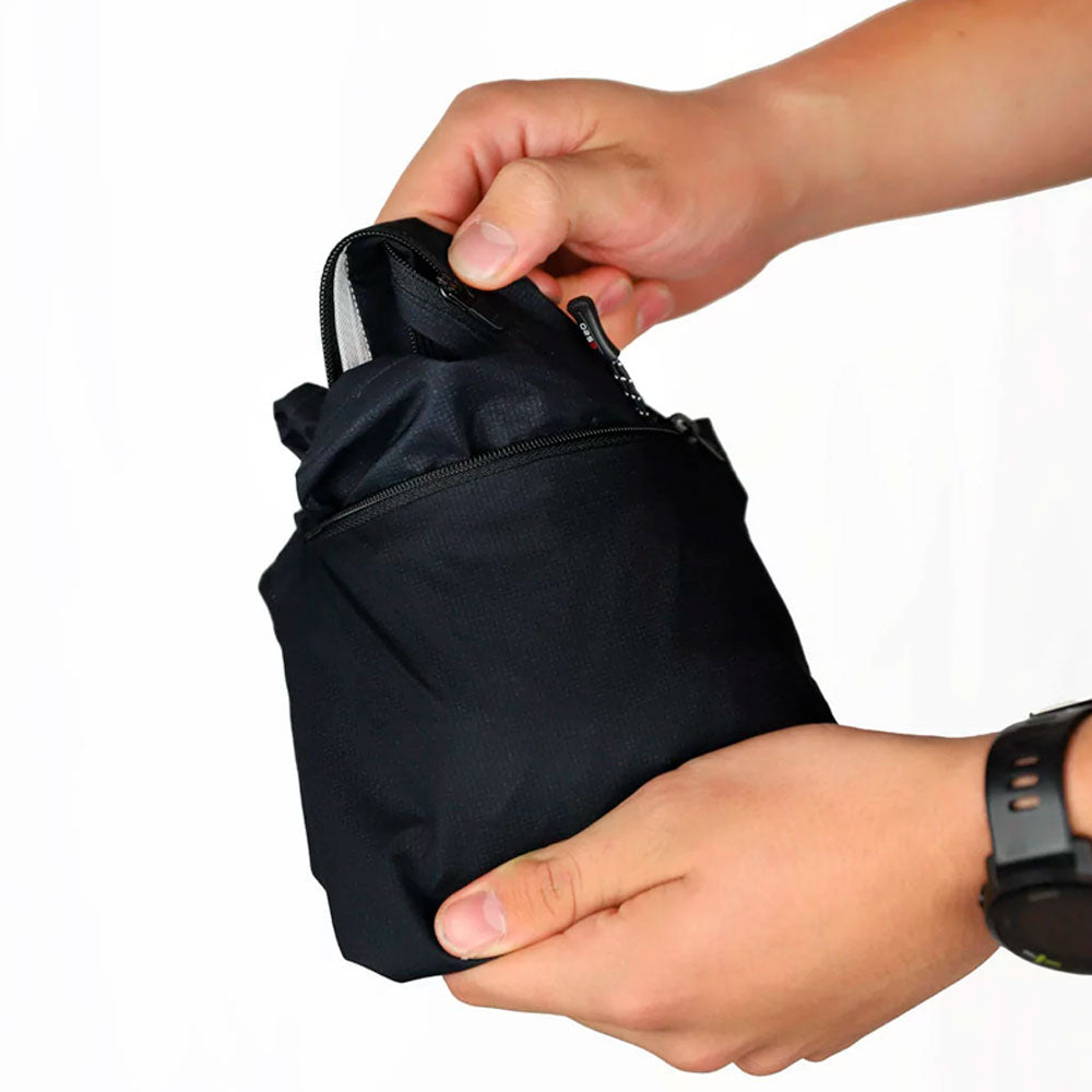 La cintura cuenta con el sistema Custom Lace, que combina un elástico con un cordón de ajuste de precisión. Esto garantiza un ajuste seguro sin necesidad de reajustes constantes. Además, es plegable en su propio bolsillo trasero, facilitando su transporte cuando no se usa.