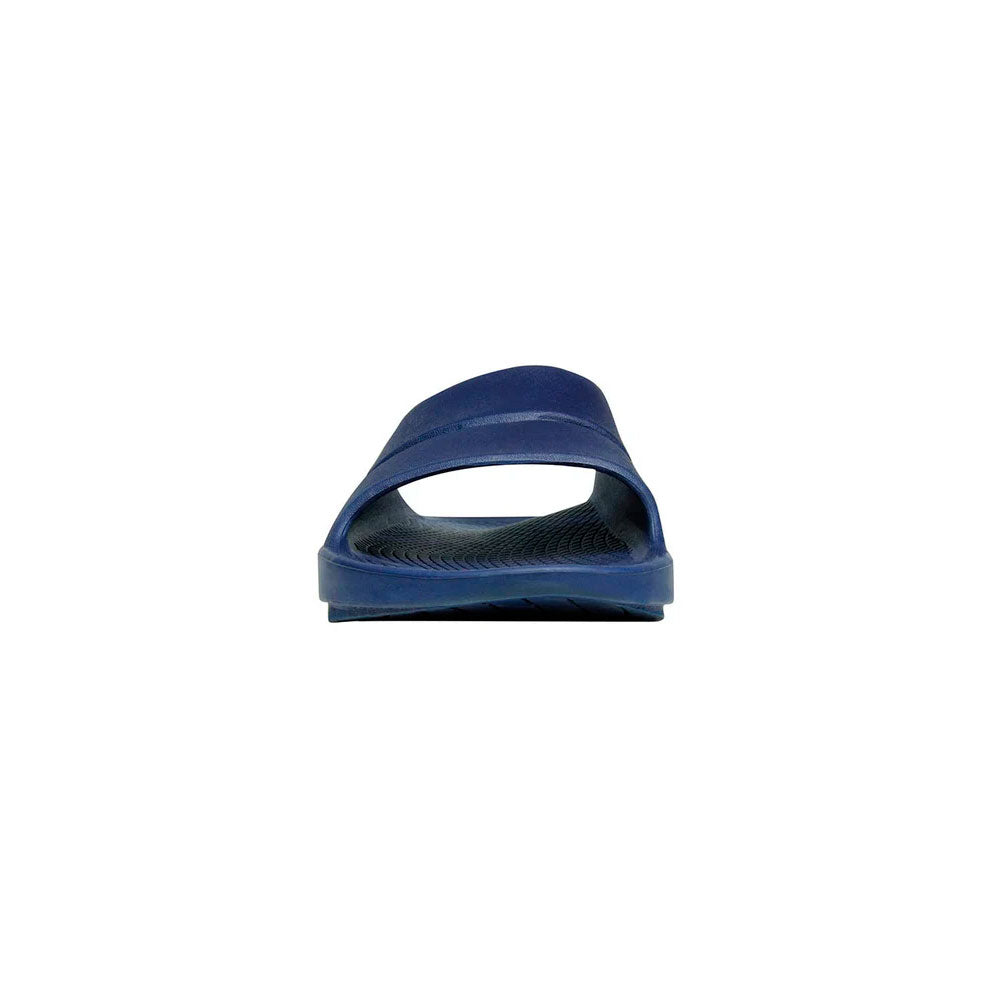Las sandalias Oofos Recovery Ooahh Azul Marino aportan una comodidad increíbles, capaces de aliviar y revitalizar tus pies, dejándolos como nuevos. La tecnología OOfoam / nuestro diseño plantar patentado proporciona una mayor absorción del impacto de la pisada, gracias al soporte en el arco del pie, además de nuestras plantillas patentadas para proporcionar un movimiento natural y confort. Sus pies notarán la diferencia. El calzado deportivo tradicional ofrece un efecto rebote para conseguir mayor impulso durante las actividades físicas/deportivas. La tecnología OOfoam hace lo contrario, absorbiendo un 37% más el impacto, reduciendo así la carga en tus pies y ayudando a una rápida recuperación de tu cuerpo. Sujeta el arco del pie. Diseño biomecánico que permite un movimiento natural del pie. La punta suave se ajusta perfectamente al pie, evitando las rozaduras en los dedos. Anti-deslizantes en superficies secas y mojadas, resistente a las bacterias y transpirable, evita el mal olor. Ligeras y flexibles como una pluma.
