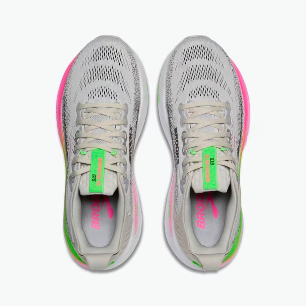 El gran protagonista es el sistema GuideRails, el soporte característico de Brooks, que actúa de manera lateral para corregir excesos de pronación sin invadir la pisada. No fuerza, guía.