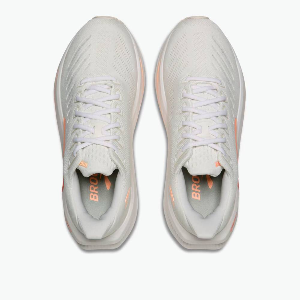 El nuevo upper de malla jacquard ofrece una sensación más suave y una ventilación mejorada respecto a la versión anterior. Brooks ha ajustado el diseño para lograr un mediopié más ceñido y estable, acompañado de un antepié más espacioso, lo que se traduce en un ajuste equilibrado entre sujeción y confort. El resultado es una parte superior más adaptable y agradable para las distancias largas, sin puntos de presión ni exceso de compresión.