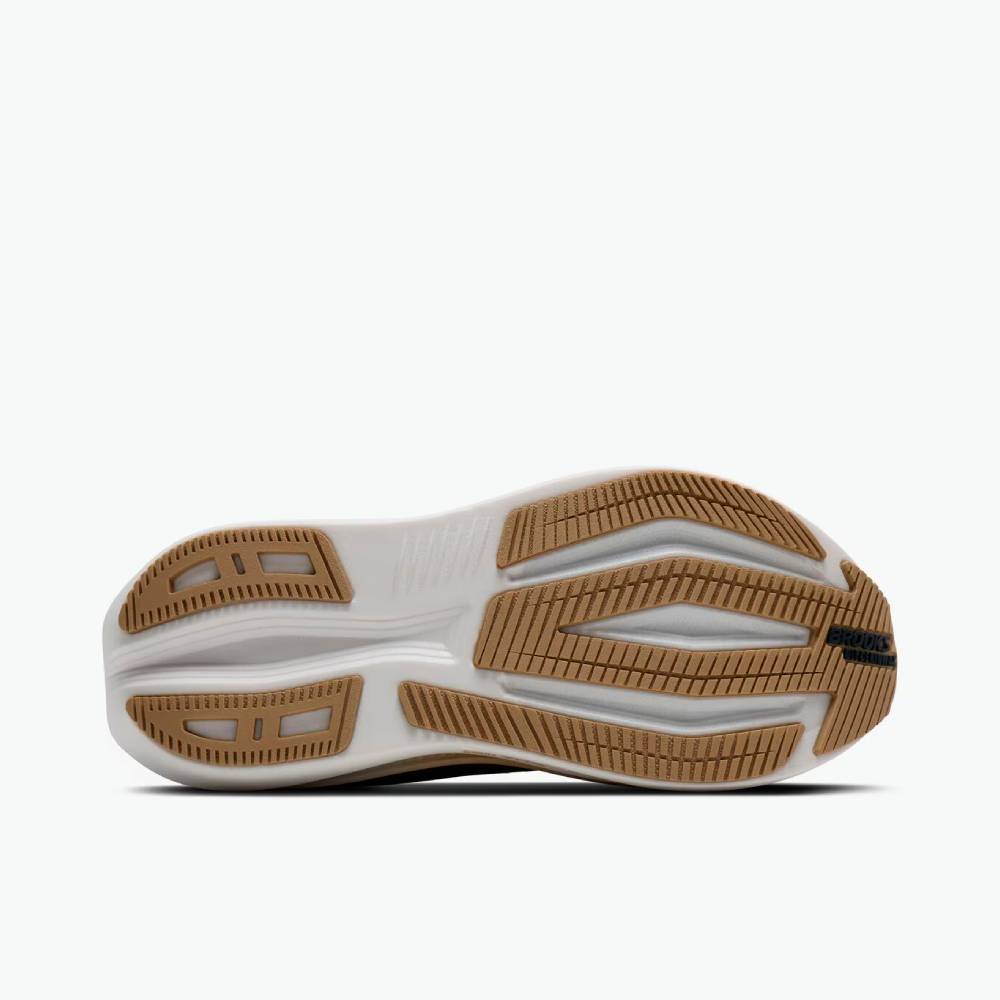 El nuevo upper de malla jacquard ofrece una sensación más suave y una ventilación mejorada respecto a la versión anterior. Brooks ha ajustado el diseño para lograr un mediopié más ceñido y estable, acompañado de un antepié más espacioso, lo que se traduce en un ajuste equilibrado entre sujeción y confort. El resultado es una parte superior más adaptable y agradable para las distancias largas, sin puntos de presión ni exceso de compresión.