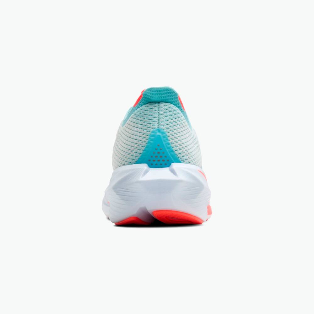 El upper está fabricado en jacquard mesh de doble capa, un tejido técnico que combina sujeción y transpirabilidad. El ajuste se siente seguro en el mediopié y flexible en el antepié, adaptándose a tus movimientos sin provocar molestias, incluso a ritmos altos.