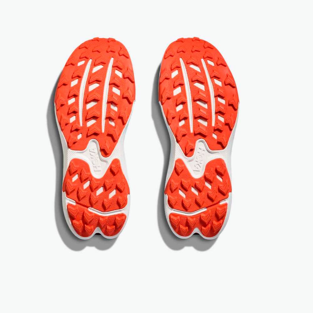 Hoka sigue apostando por un compuesto propio en la suela de estas Torrent 4 y por una estructura dividida, no una suela completa. Va muy bien para terrenos compactos y los tacos de 5 mm aportan mucho agarre y estabilidad en barro o suelos blandos. Se clavan bien y te permiten ir rápido y con seguridad.