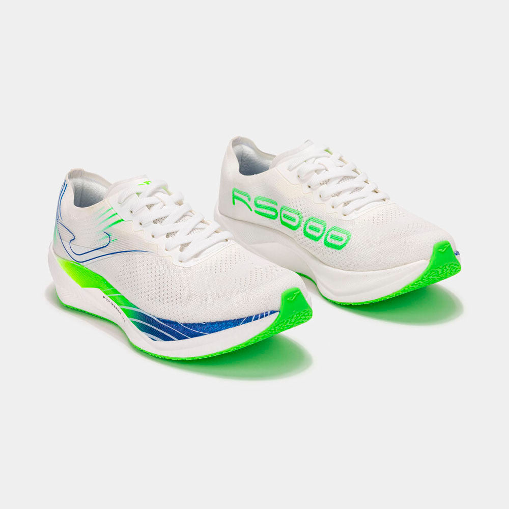 Zapatillas de running con placa de carbono. Las Joma R-5000 están homologadas por World Athletics como un modelo específico de competición. Estas zapatillas se destacan por su extrema ligereza, con un peso de solo 247 gramos. Son ideales para mantener ritmos elevados en competiciones de corta distancia sin que el peso sea un impedimento.