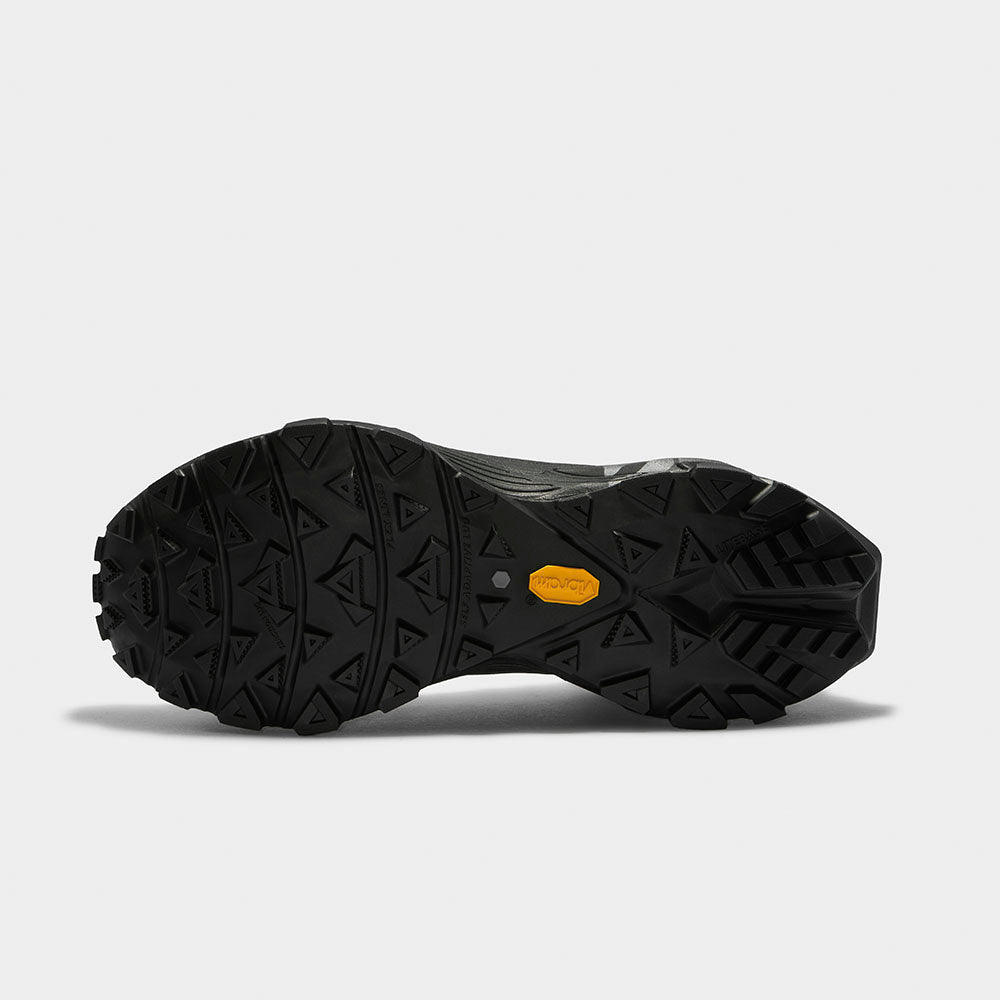 La suela está compuesta por Vibram Megagrip, uno de los compuestos más fiables en trail running. Con tacos de 4 mm, la disposición busca maximizar la tracción en la parte delantera y mejorar la retención en bajadas con el diseño trasero.