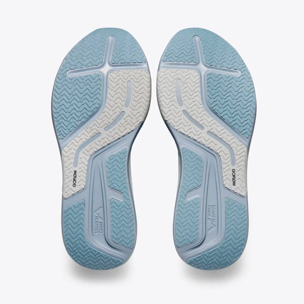 Todo ello se combina con la geometría GOFLOW, diseñada para mantener el pie alineado desde el talón hasta la puntera, favoreciendo una transición natural y fluida que reduce el desgaste muscular y mejora la eficiencia de carrera.