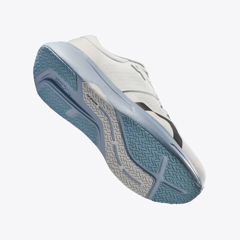 Todo ello se combina con la geometría GOFLOW, diseñada para mantener el pie alineado desde el talón hasta la puntera, favoreciendo una transición natural y fluida que reduce el desgaste muscular y mejora la eficiencia de carrera.
