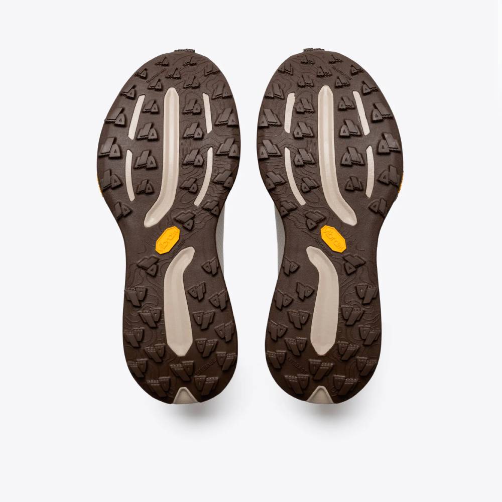 Cuentan con una suela Vibram Megagrip Litebase con Traction Lug y tacos de 4 mm, lo que aporta un agarre buenísimo en todo tipo de terrenos, desde los más sencillitos hasta los más técnicos. Rocas, raíces, piedras sueltas, hierba, lo que quieras. Incluso en zonas húmedas o con barro —no siendo una zapa específica para esto, ojo— van muy bien.
