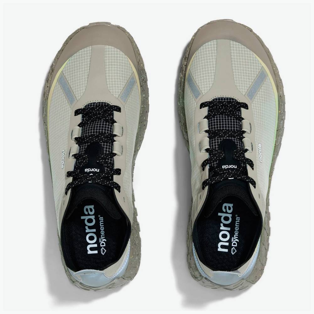 Construidas con el primer upper Bio-Dyneema® sin costuras del mundo, una mediasuela exclusiva norda™ x Arnitel® TPEE  y suela Vibram®. Las zapatillas Norda 001A están diseñadas con los materiales más ligeros y resistentes para brindar comodidad sin sentido en actividades conscientes. Diseñadas para demostrar que la verdadera sostenibilidad se encuentra en la durabilidad.