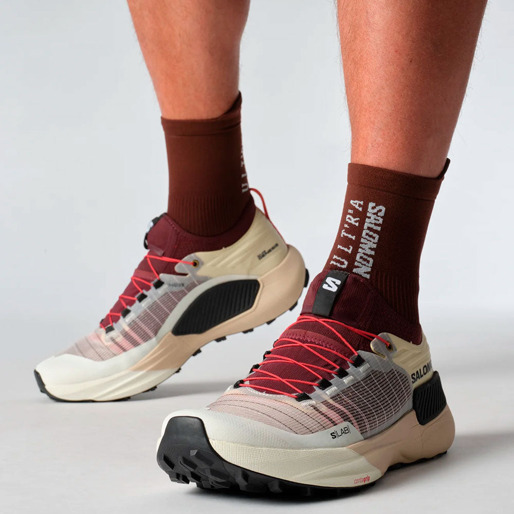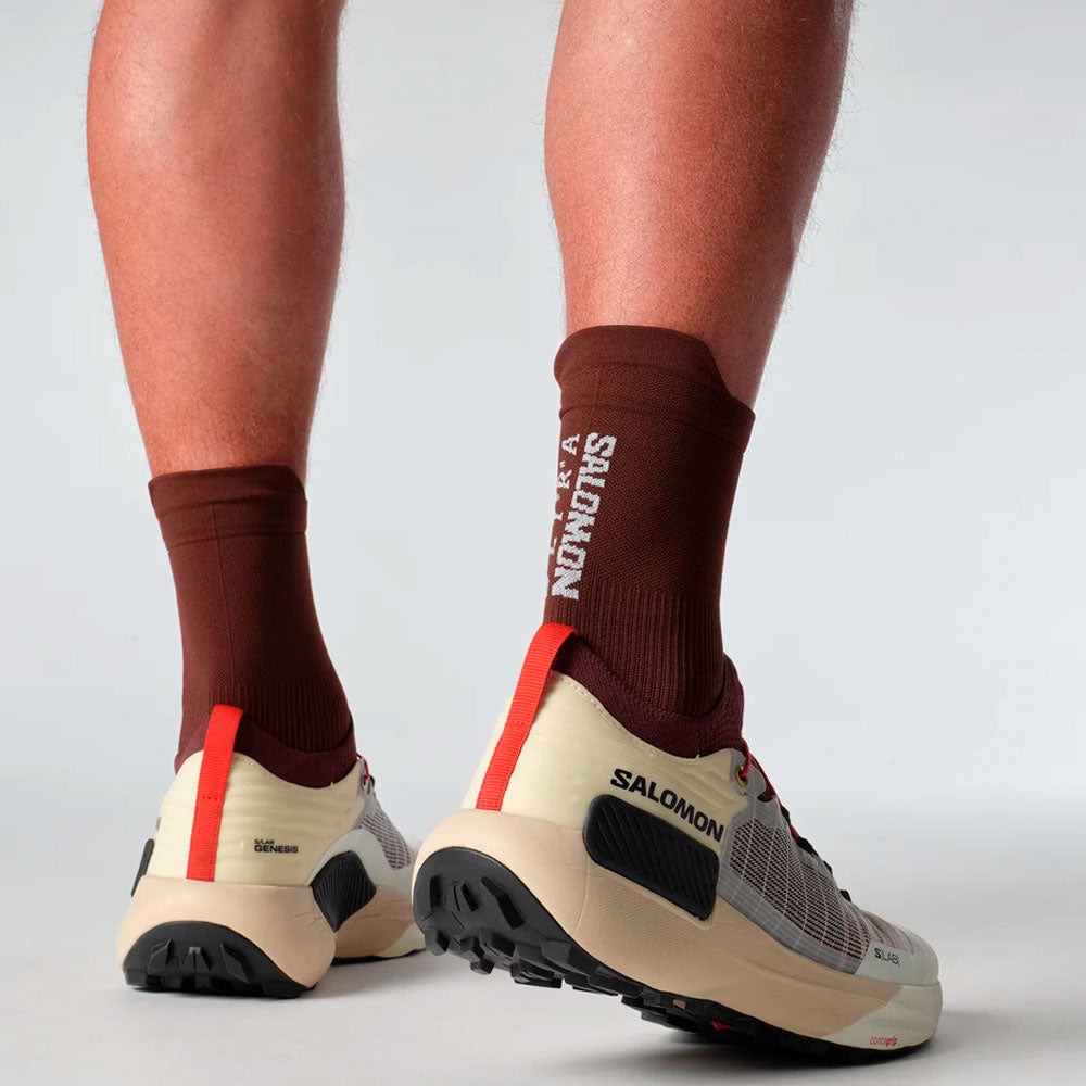 Las zapatillas Salomon S/LAB Genesis están diseñadas para quienes buscan una zapatilla resistente y versátil en terrenos exigentes. Con un peso de 258 g, ofrecen una combinación equilibrada entre ligereza y protección. Su drop de 8 mm permite una pisada estable en senderos técnicos.
