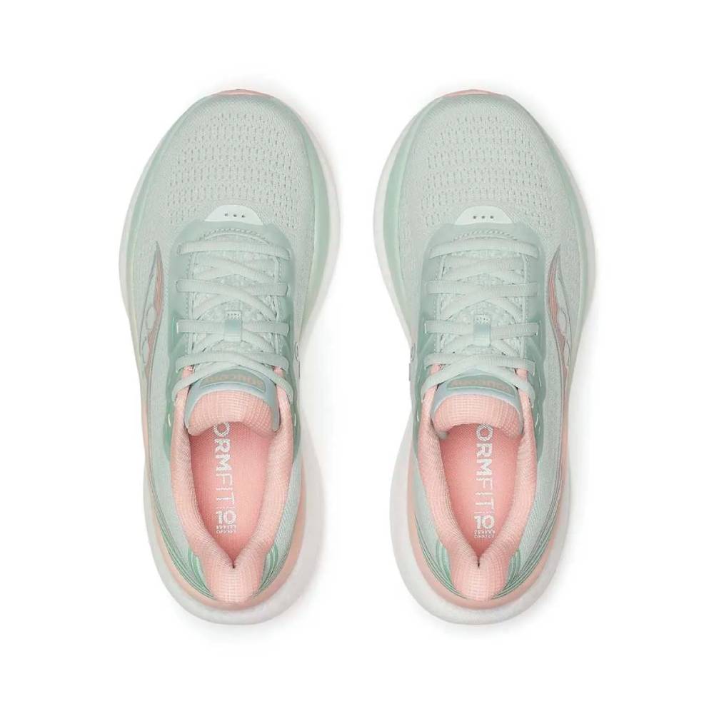 El upper de la Saucony Triumph 23 ha sido reestructurado para mejorar el confort general del ajuste. Utiliza una malla técnica diseñada para ofrecer una buena combinación entre transpirabilidad y sujeción, con un interior muy cuidado y agradable al contacto con el pie. El collar y la lengüeta ganan protagonismo con un mayor acolchado, reforzando la sensación de confort en tiradas largas y aportando ese tacto premium que caracteriza a la saga Triumph. El ajuste es seguro, cómodo y pensado para un uso prolongado en el día a día.